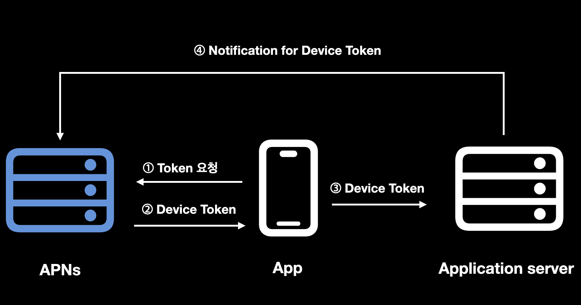 4. App의 Server에서 APNs로 요청5. APNs가 디바이스로 알림 전달