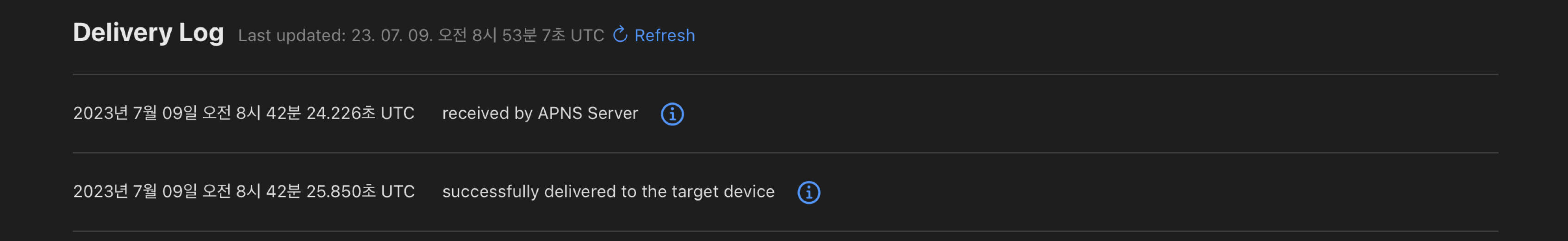 또한, 로그들은 Push Notification Console을 통해서 보낸 알림들만 30일간 제공이됩니다 !