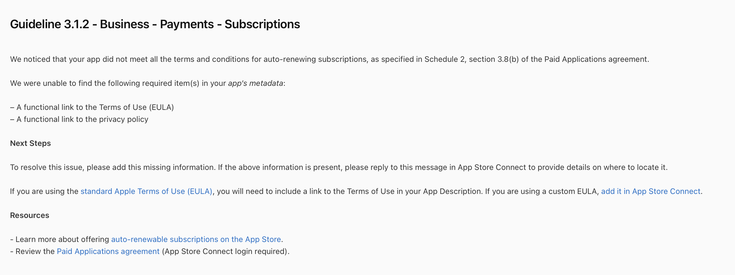 애플 리젝 Guideline 3.1.2 - Business - Payments - Subscriptions (specified in Schedule 2, section 3.8(b) of the Paid Applications agreement.)/Apple 심사 & 배포 관련 2023. 11. 11. 01:30반응형