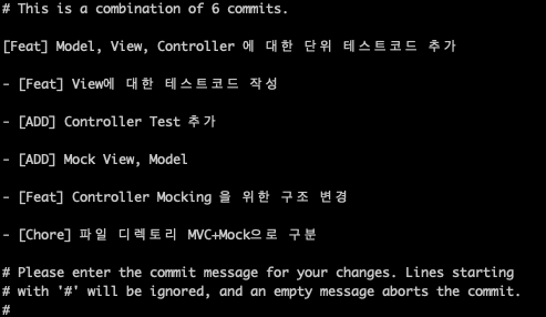 :wq 통해서 에디터에서 저장 후 종료를 해주면 묶인 커밋 메세지를 수정할 수 있고, 저는 아래 사진과 같이 편집했습니다.