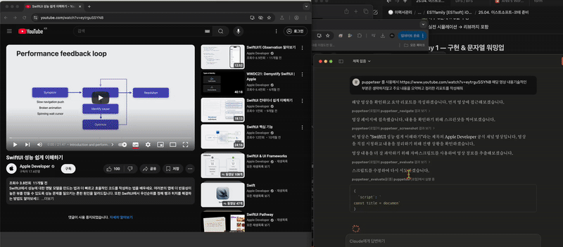 아래는 Puppeteer를 이용해 WWDC 유튜브 링크 내용을 요약해달라고 요청하는 예시입니다