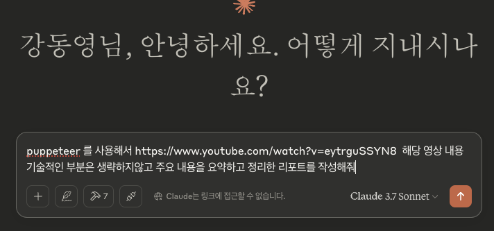 puppeteer 를 사용해서 https://www.youtube.com/watch?v=eytrguSSYN8 해당 영상 내용기술적인 부분은 생략하지않고 주요 내용을 요약하고 정리한 리포트를 작성해줘 // 영상 , 코드 삽입 시 유료 모델 필요도구 사용시에 권한 요청이 나옵니다. 전 귀찮아도 이 대화에 허용만 클릭하였습니다.