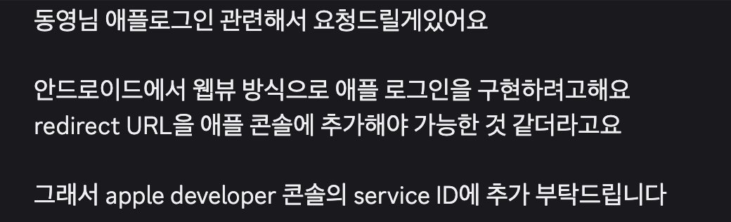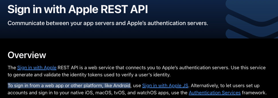 공식문서에서 안드로이드에서 웹뷰 방식으로 애플 로그인 구현은 Apple JS 를 권장하네요