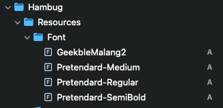 for family in UIFont.familyNames.sorted() { let names = UIFont.fontNames(forFamilyName: family) print("Family: \(family) Font names: \(names)") } // Family: Pretendard Font names: ["Pretendard-Regular", "Pretendard-Medium", "Pretendard-SemiBold"]정리