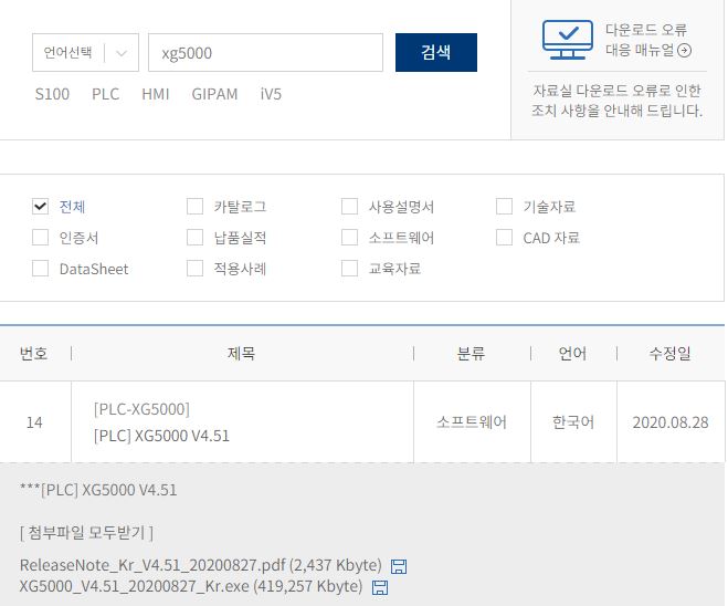 XG5000 검색하기 다운로드 자료실에서 'XG5000' 입력 후에 검색을 눌러주시고