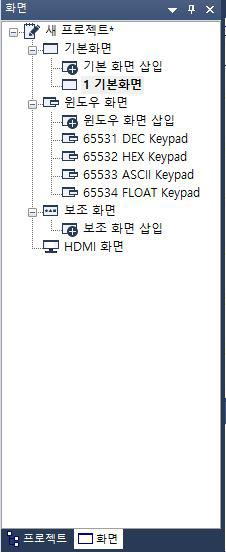 프로젝트 / 화면 왼쪽 화면을 보면 초기에는 프로젝트와 화면 탭 밖에 없을 겁니다!!
