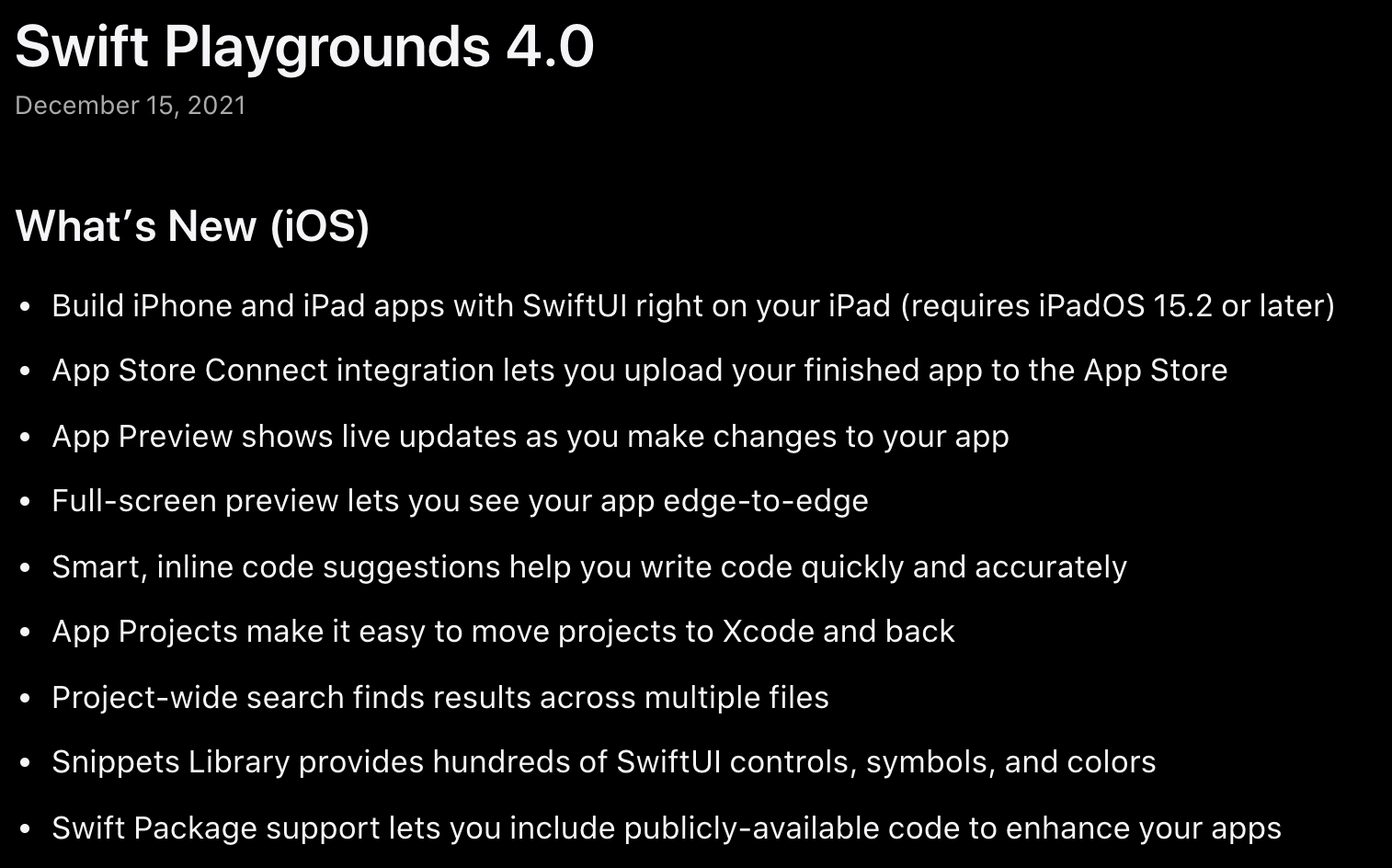 애플의 Playgrounds 릴리즈 노트이다. 무려 15개월 전 이야기이다.
