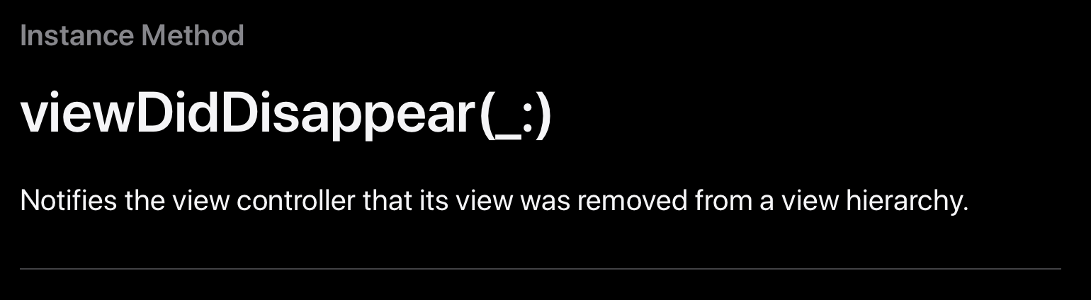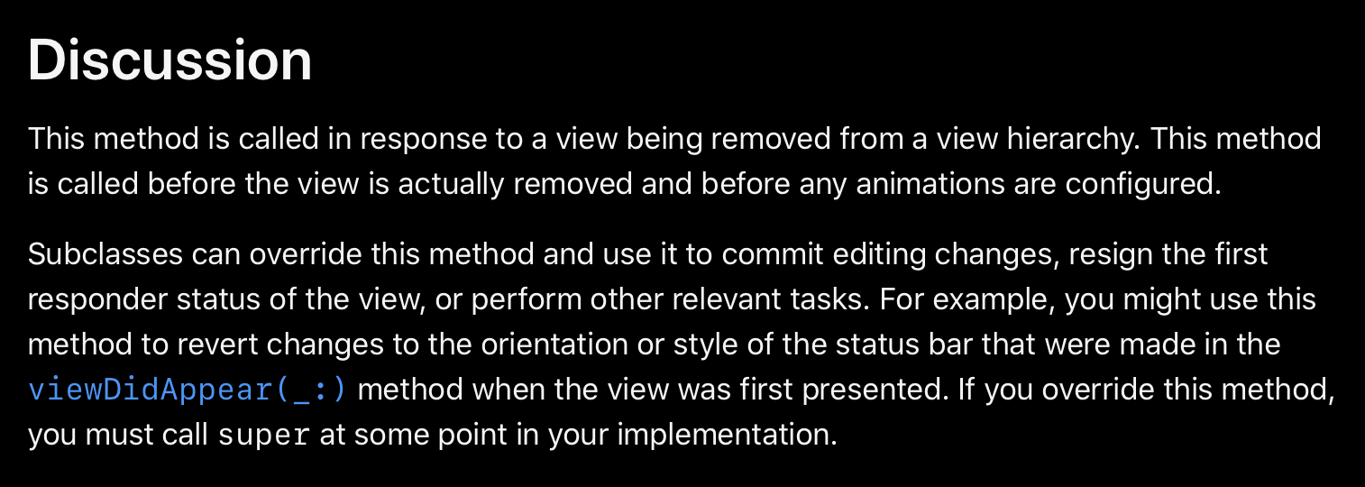 출처: Apple Developer 이 메소드는 view가 실제로 제거되기 전에 호출되어진다.