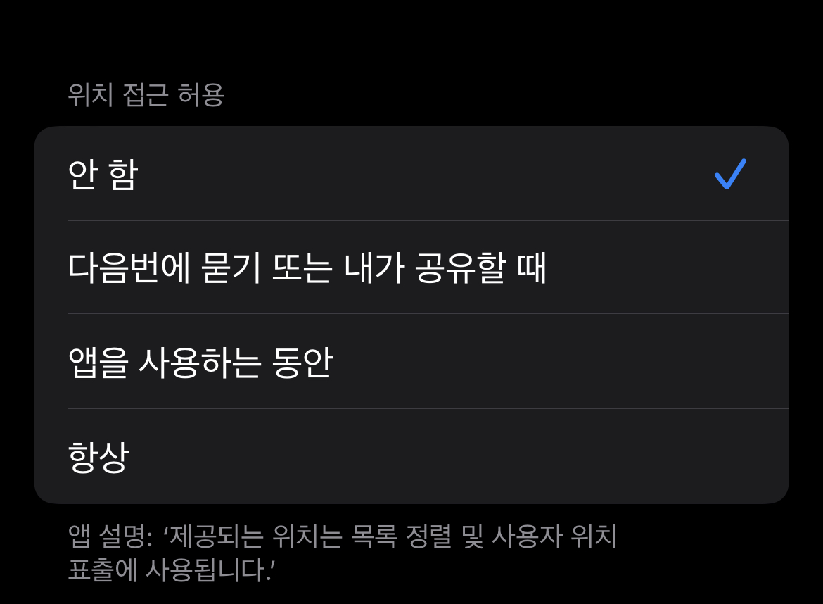 denied : 사용자가 위치 정보를 해당 앱이 접근하는 것을 거부