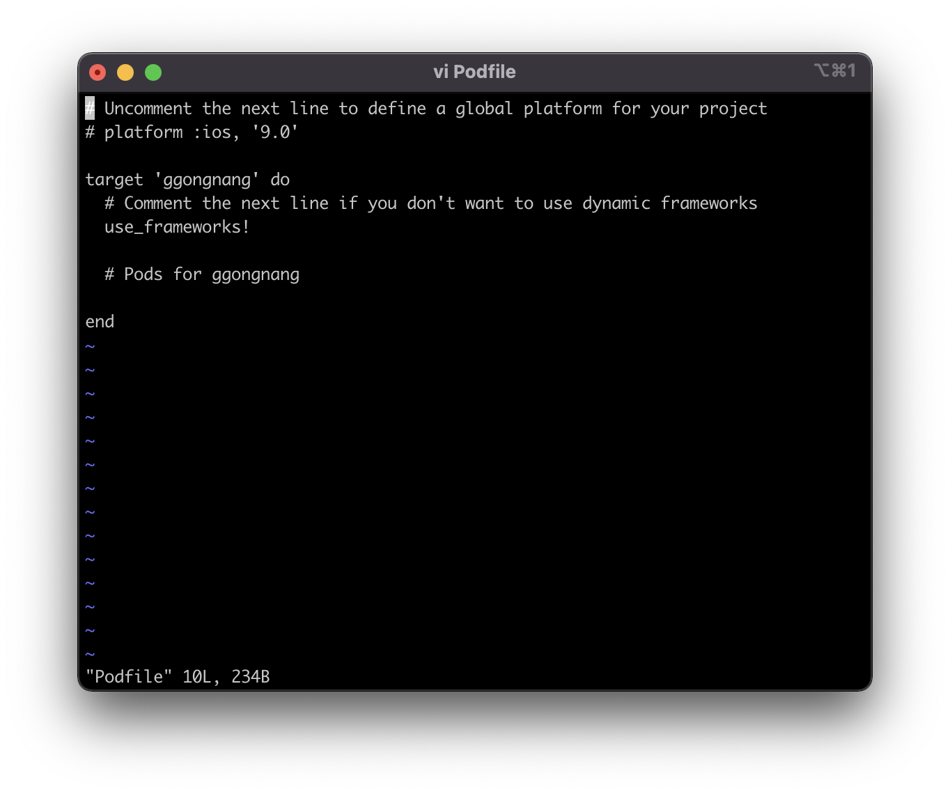 pod init디렉토리에 이동해보면 Podfile이 추가되어있는 것을 확인할 수 있다.