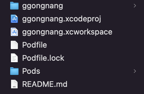 pod install설치 후에 프로젝트에 들어간다면 .xcworkspace가 생긴걸 볼 수 있다.