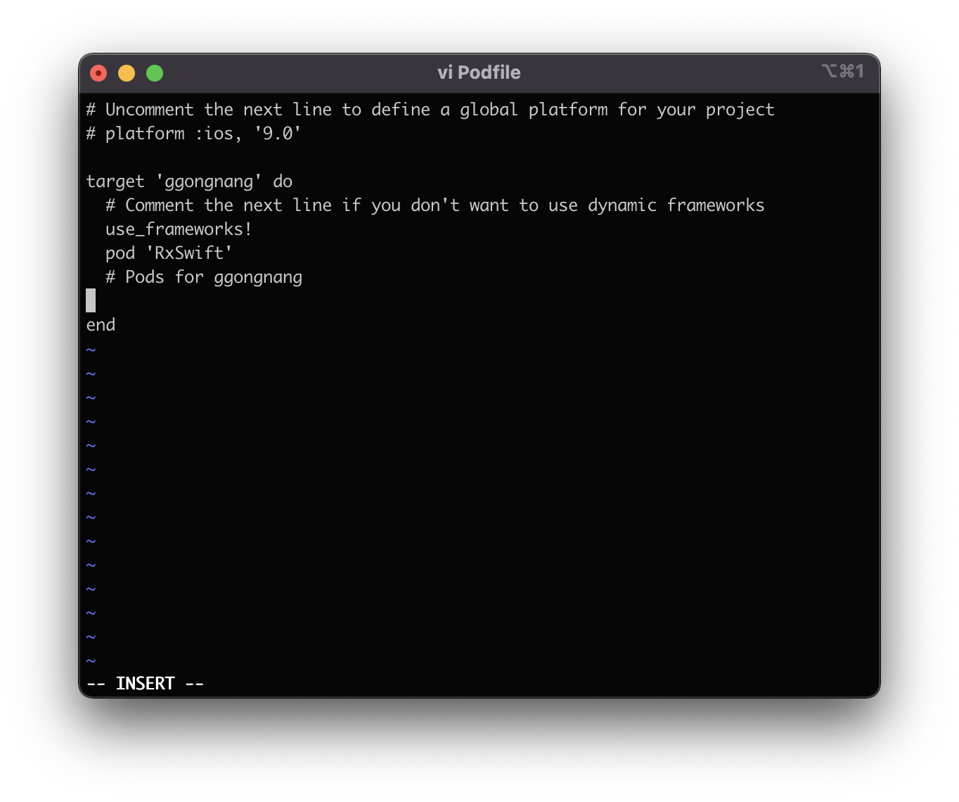 추가 후 Podfile를 편집 완료했다면 저장 후에 다시 아래의 명령어를 입력해준다.
