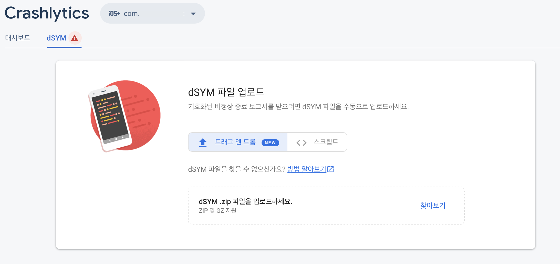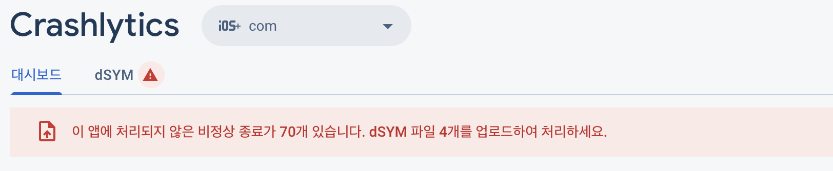 파일 업로드를 하기 위해서 대시보드에서 dSYM 탭으로 이동했습니다 !!