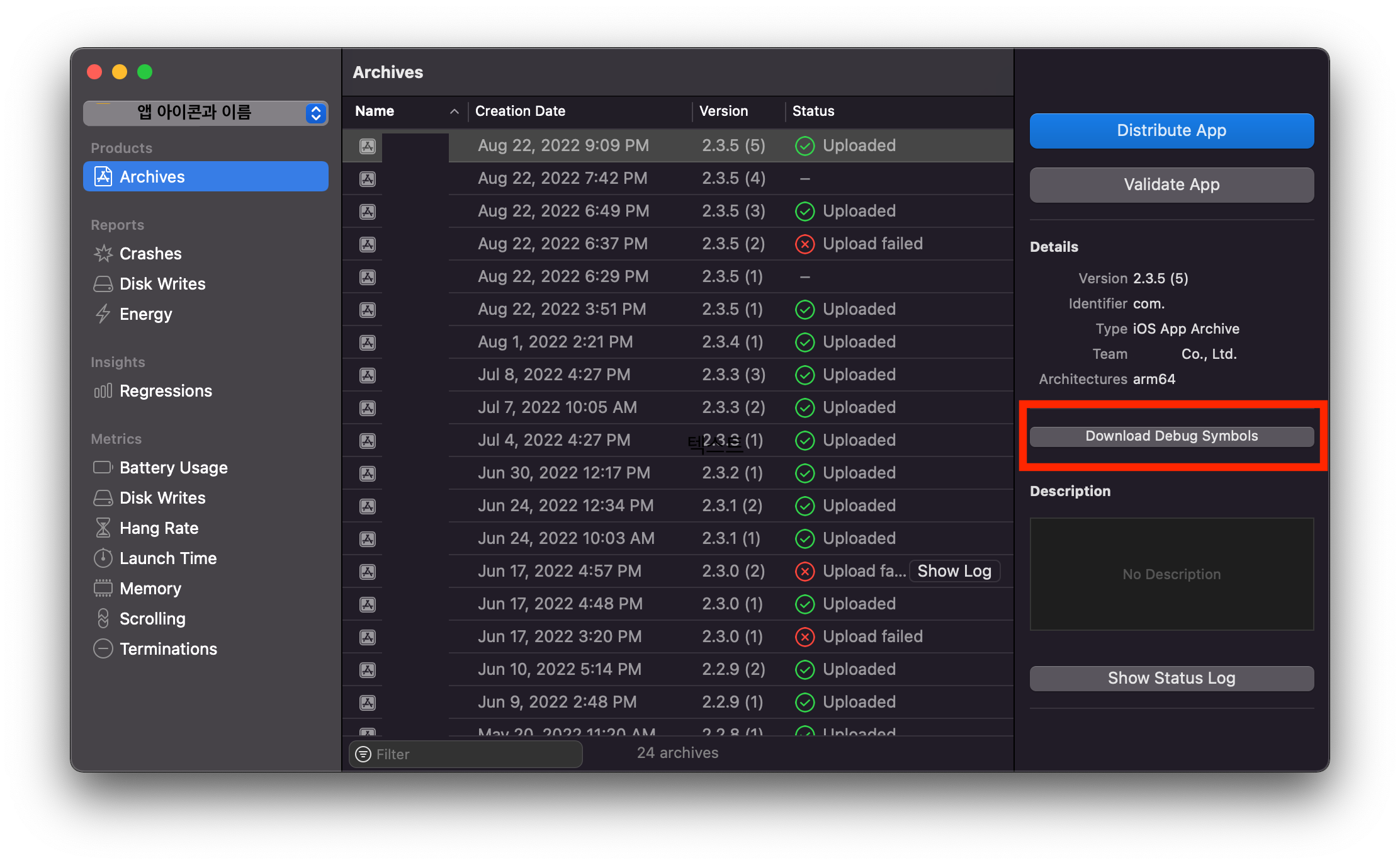 .dSYM 파일 업로드하기