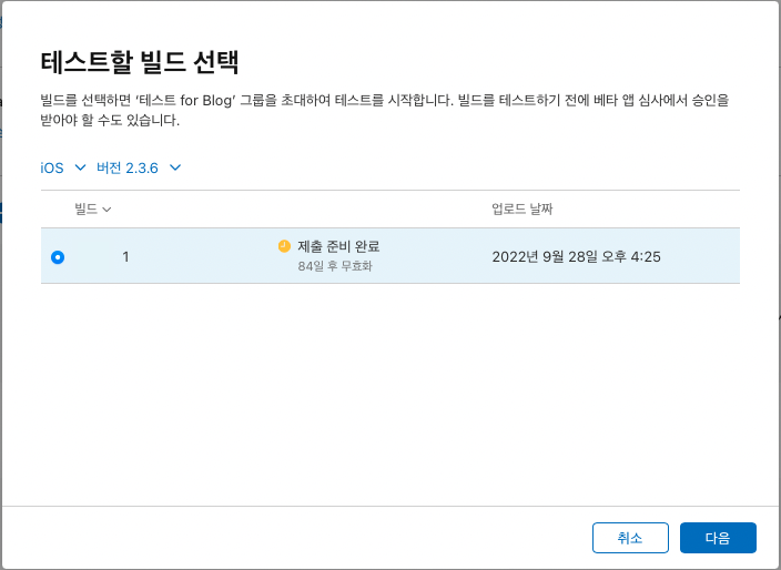 업로드가 완료된 이후에도 업로드 가능한 빌드를 찾기까지 약간의 시간이 소요됩니다 !