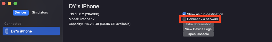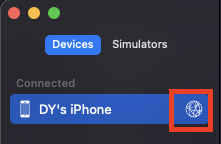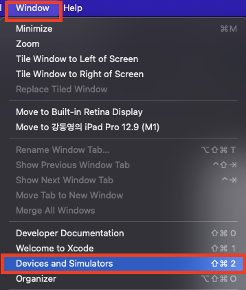 1번 Xcode - Window - Devices and Simulators 혹은 단축키 ⇧+⌘+2 를 통해서 메뉴에 접근할 수 있습니다 !