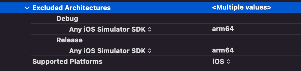 - Xcode12에서부터 ARM기반 맥(애플실리콘)을 지원함에 따라 아이폰 시뮬레이터에 ARM용 아키텍쳐 arm64가 추가돼 발생이라나 뭐라나 ..,,,