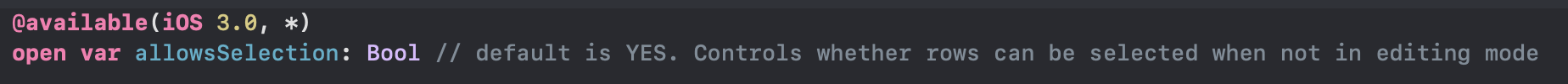 allowSelection의 default value는 YES(true)라고하니 Selection을 사용하지않기 위해서는 꼭 NO(false)로 설정해야합니다