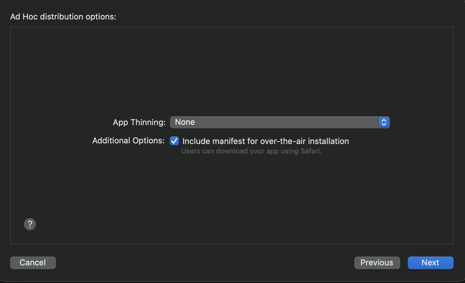 ipa를 추출해야하기 때문에 Ad Hoc를 클릭해주세요