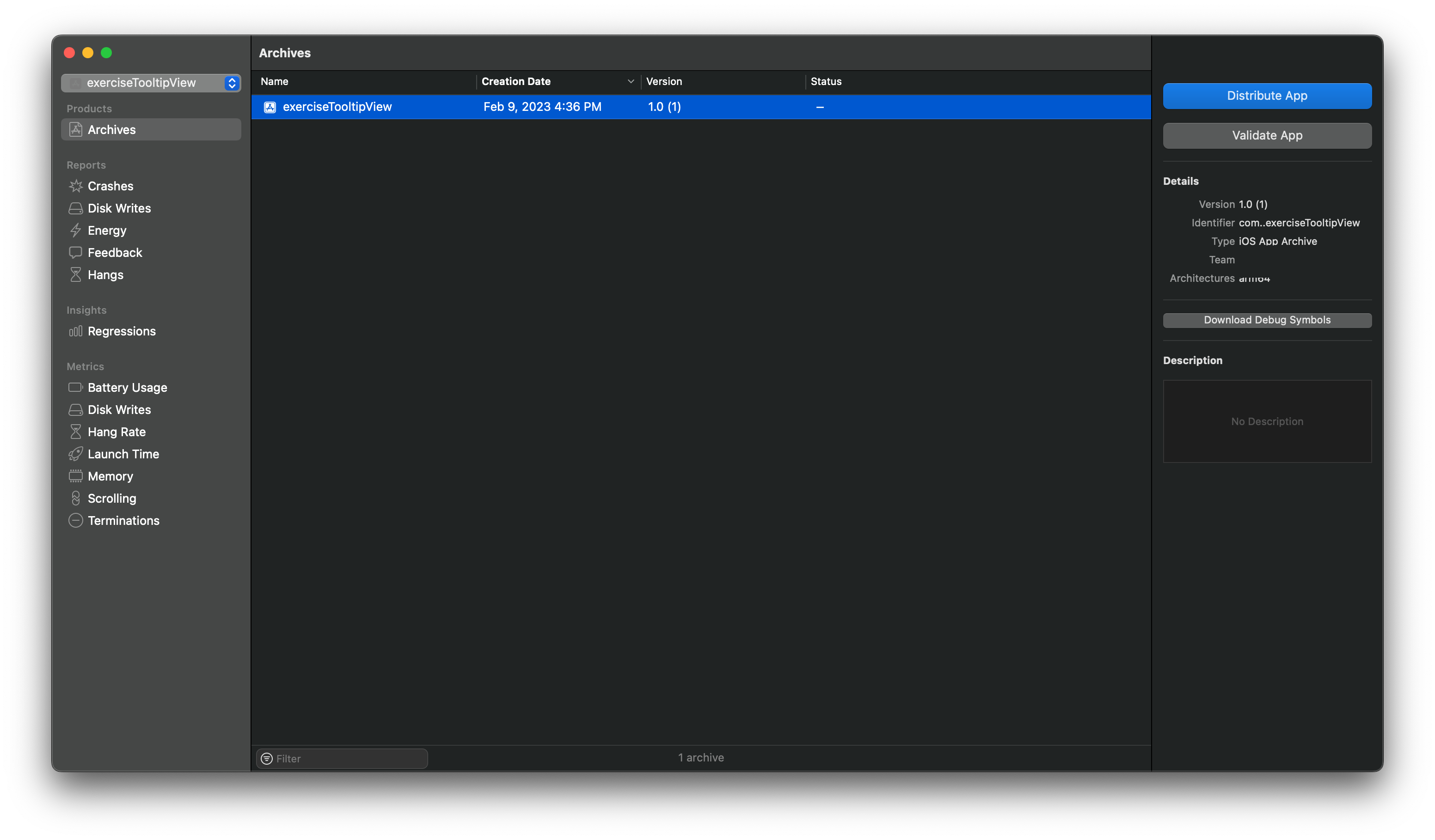 빌드가 진행 된 뒤에 아카이브 화면을 볼 수 있어요