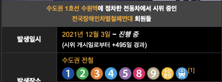 중간 중간 전장연 시위를 하지않은 적도 많았지만, 체감 상 7개월 이상은 시위에 시달린거 같아요